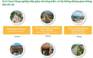 Cụm công nghiệp thuộc địa bàn huyện Vân Đồn, tỉnh Quảng Ninh, kết nối giao thương quốc tế qua đường biển và đường hàng không. Hệ thống giao thông hoàn thiện gồm: